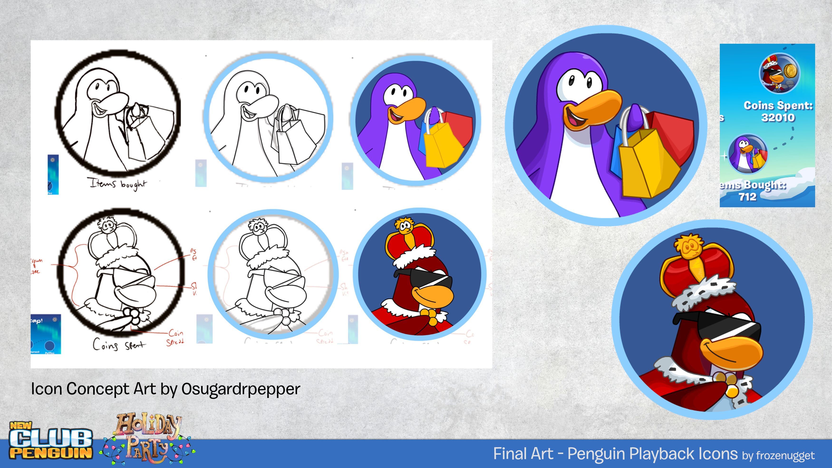 For the Holiday Party 2025, I got to work on a few tasks alone despite being overseas.This included the Merry Walrus Mascot Stamp, the "Items Bought" and "Coins Spent" icons for Penguin Playback, and the "Cute Cat Slippers" in Rockhopper's Rare Items.